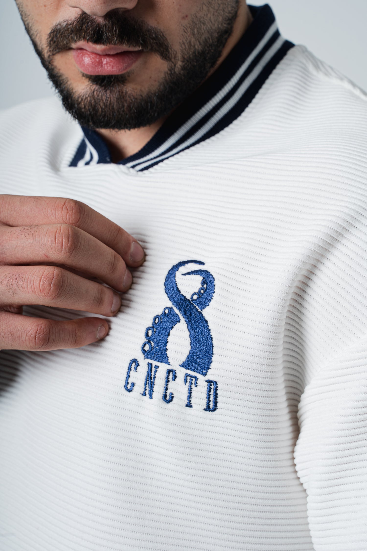 The Octo-Classic 99' features a textured premium fabric, ribbed varsity-style collar and cuffs, and the signature CNCTD emblem embroidered on the chest.