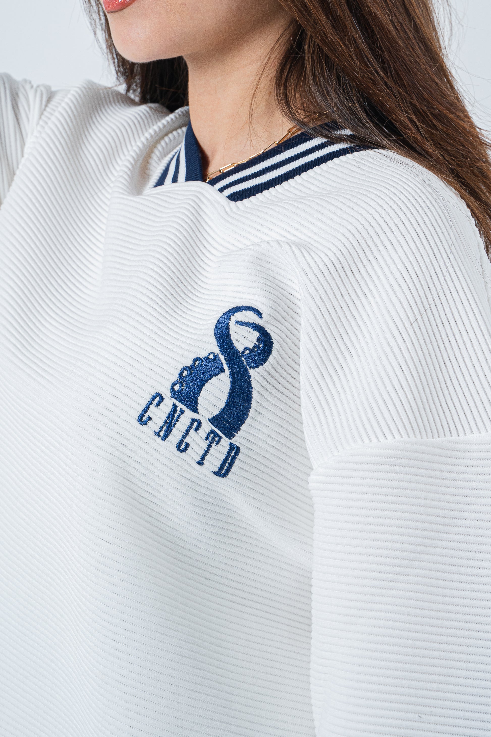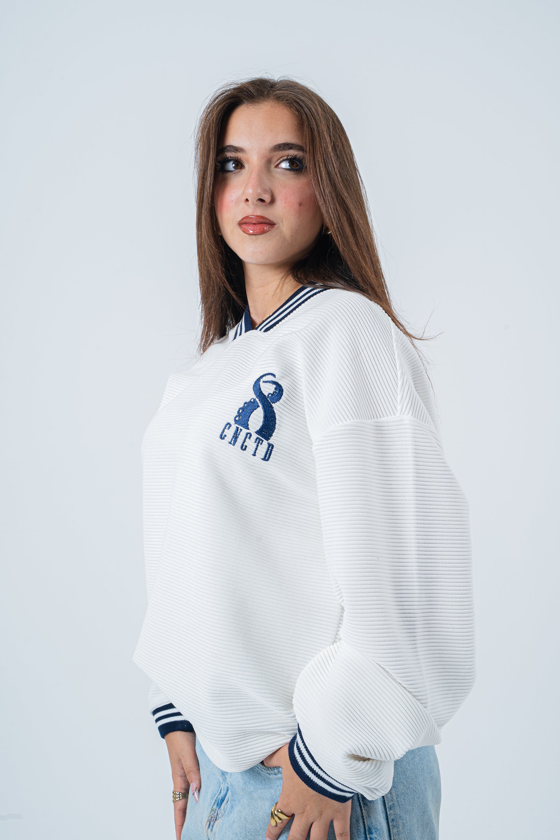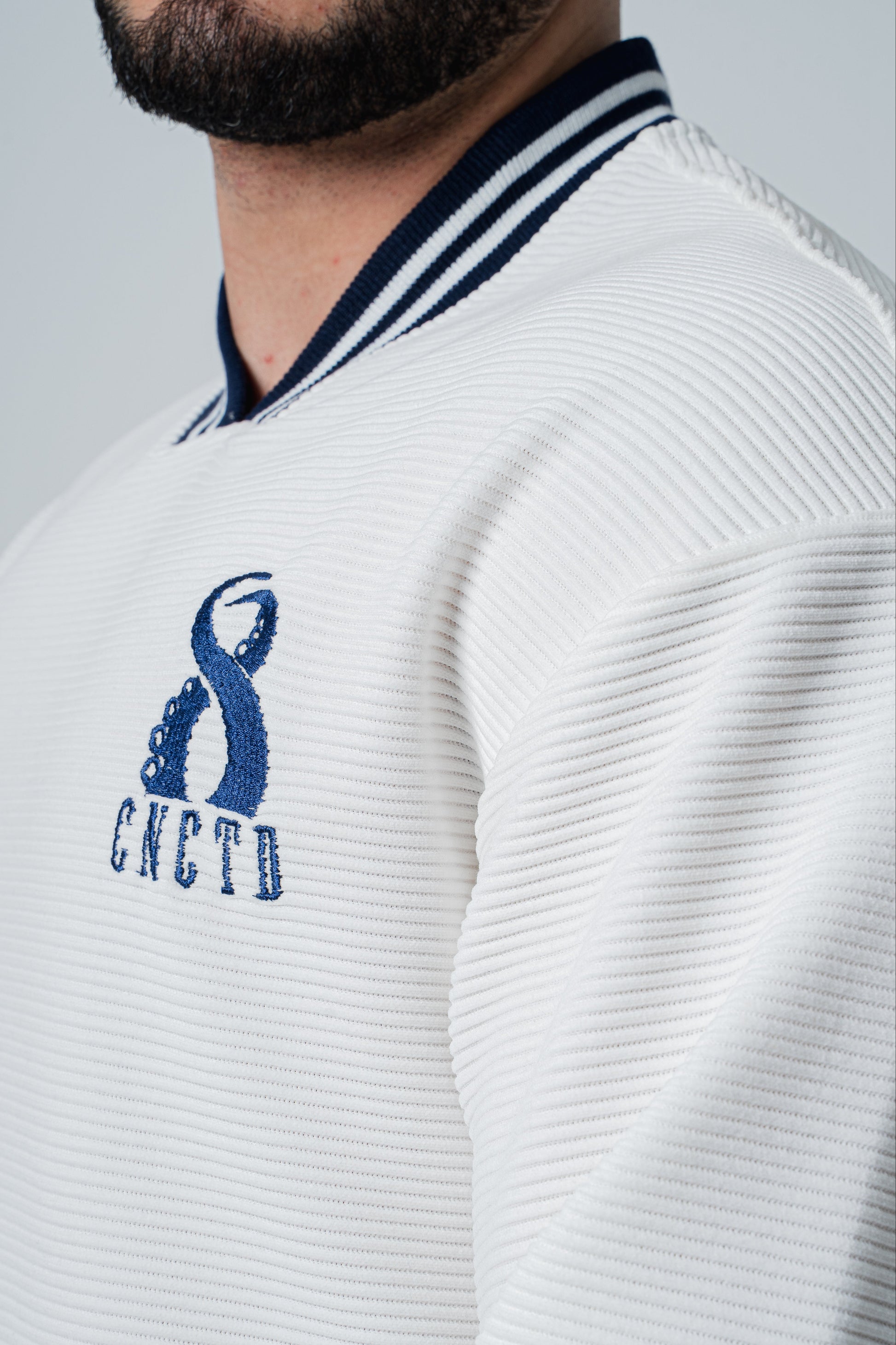 The Octo-Classic 99' features a textured premium fabric, ribbed varsity-style collar and cuffs, and the signature CNCTD emblem embroidered on the chest.